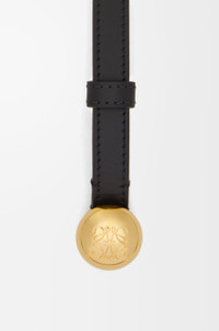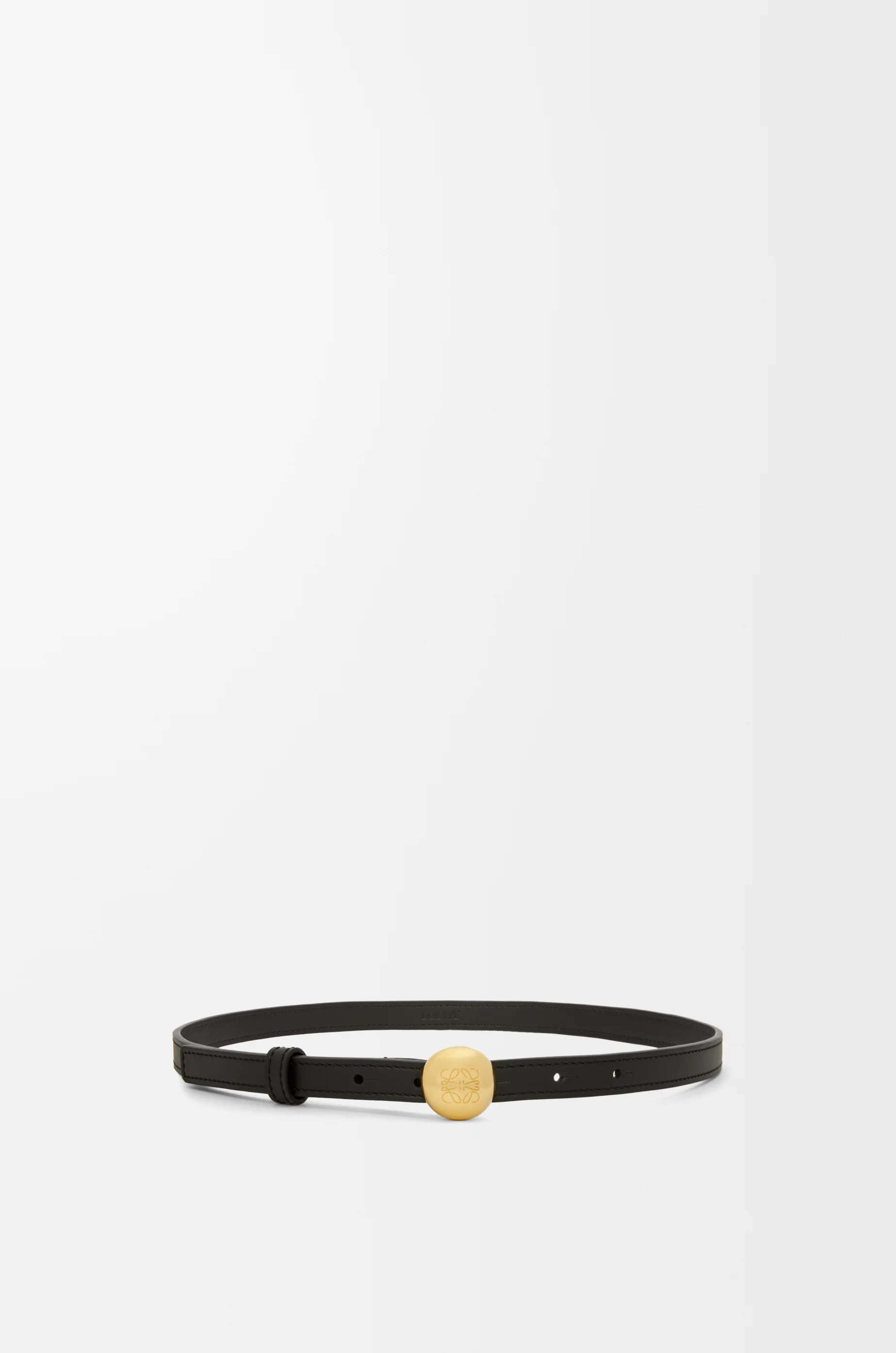 Belt in smooth calfskin with an Anagram Pebble buckle. - 1.5cm wide - Five holes regulation Details - Colour: Black/Gold - Metallic colour: Gold - Main material: Smooth Calf - Weight: 0.09 kg - Depth (cm): 1.5 - Depth (inch): 0.6 - Model ID: E619Z16X17 - Made in: Spain
