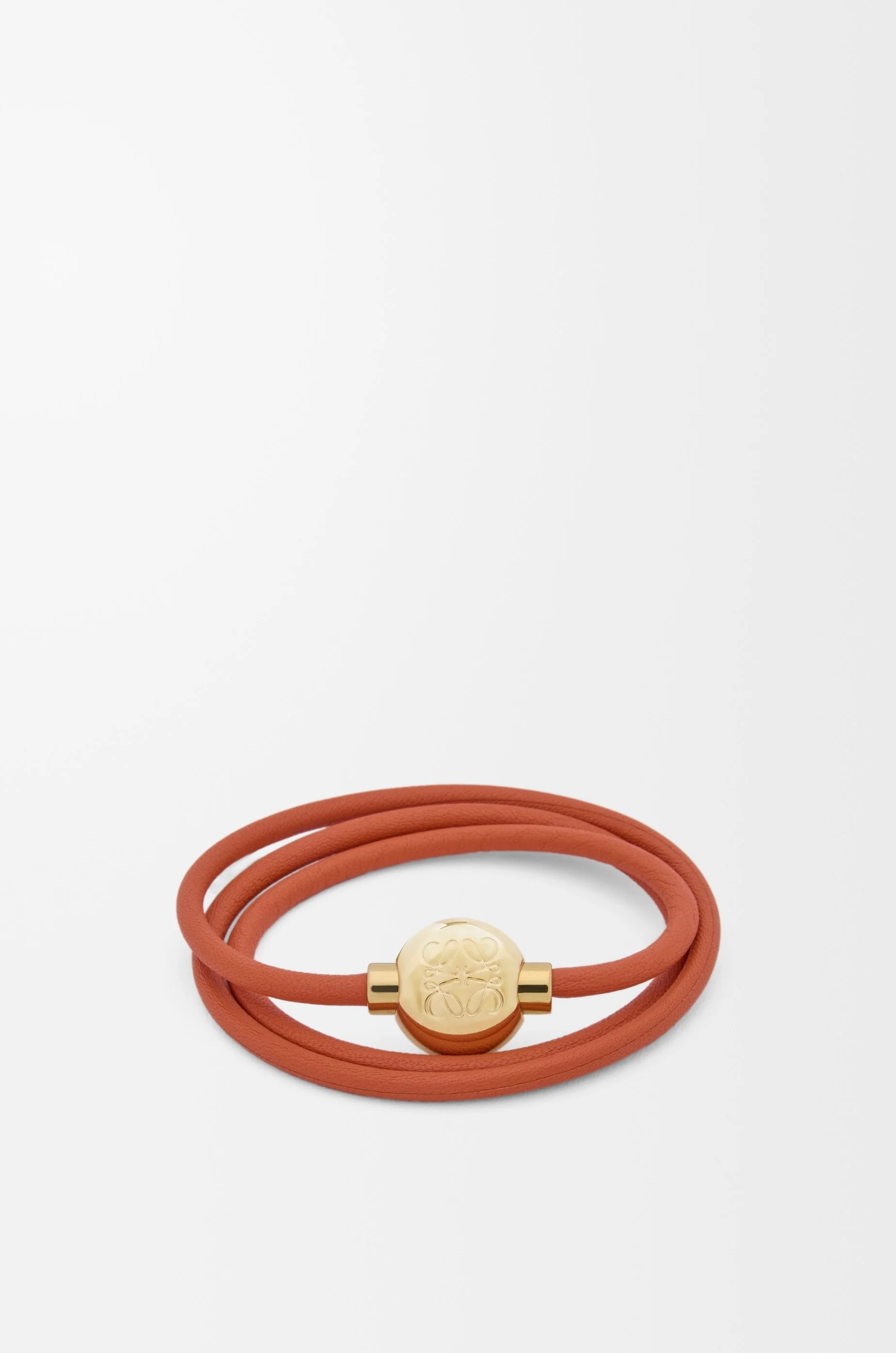 Tubular leather strap adorned with an Anagram Pebble. - Magnetic closure - Engraved Anagram Colour: Orange/Gold Metallic colour: Gold Main material: Calf Weight: 0.01 kg Depth: 1.5 cm Made in: Spain