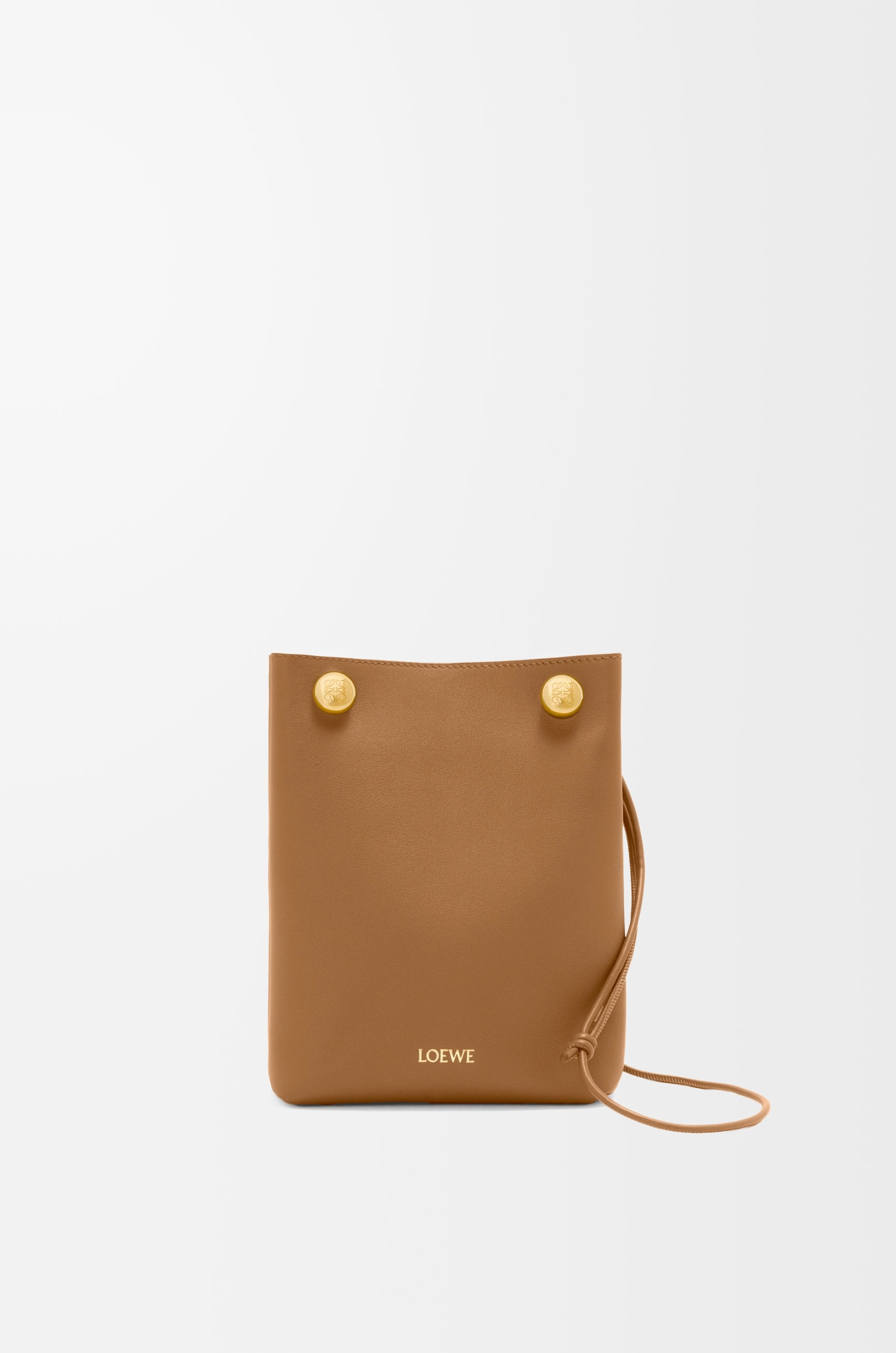 Pouch in smooth calfskin featuring a folded construction, a tubular strap and a double signature Anagram Pebble. - Adjustable strap, 63cm-123cm long - One internal pocket - Leather lining - Gold embossed LOEWE, engraved Anagram Details - Colour : Oak - Metallic colour : Gold - Main material : Smooth Calf - Strap length : 63 - 123 cm - Strap Drop : 30 - 60 cm - Weight : 0.2 kg - Height (cm) : 21.5 - Width (cm) : 17 - Depth (cm) : 7 - Height (inch) : 8.5 - Width (inch) : 6.7 - Depth (inch) : 2.8 - Model ID : CANBSPPX01 - CIL : - 0011247715 - Made in : Spain