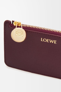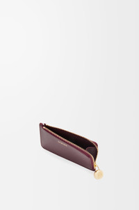 Coin cardholder in shiny nappa calfskin featuring a signature Pebble zip pull. - Zipped coin compartment with Anagram engraved Pebble pull - Four card slots - Gold embossed LOEWE Details - Colour: Burgundy - Metallic colour: Gold - Main material: Shiny Nappa Calf - Weight: 0.05 kg - Height (cm): 7.5 - Width (cm): 13 - Depth (cm): 1 - Height (inch): 3 - Width (inch): 5.1 - Depth (inch): 0.4 - Model ID: CANBZ40X01 - CIL: 0011035474 - Made in: Spain