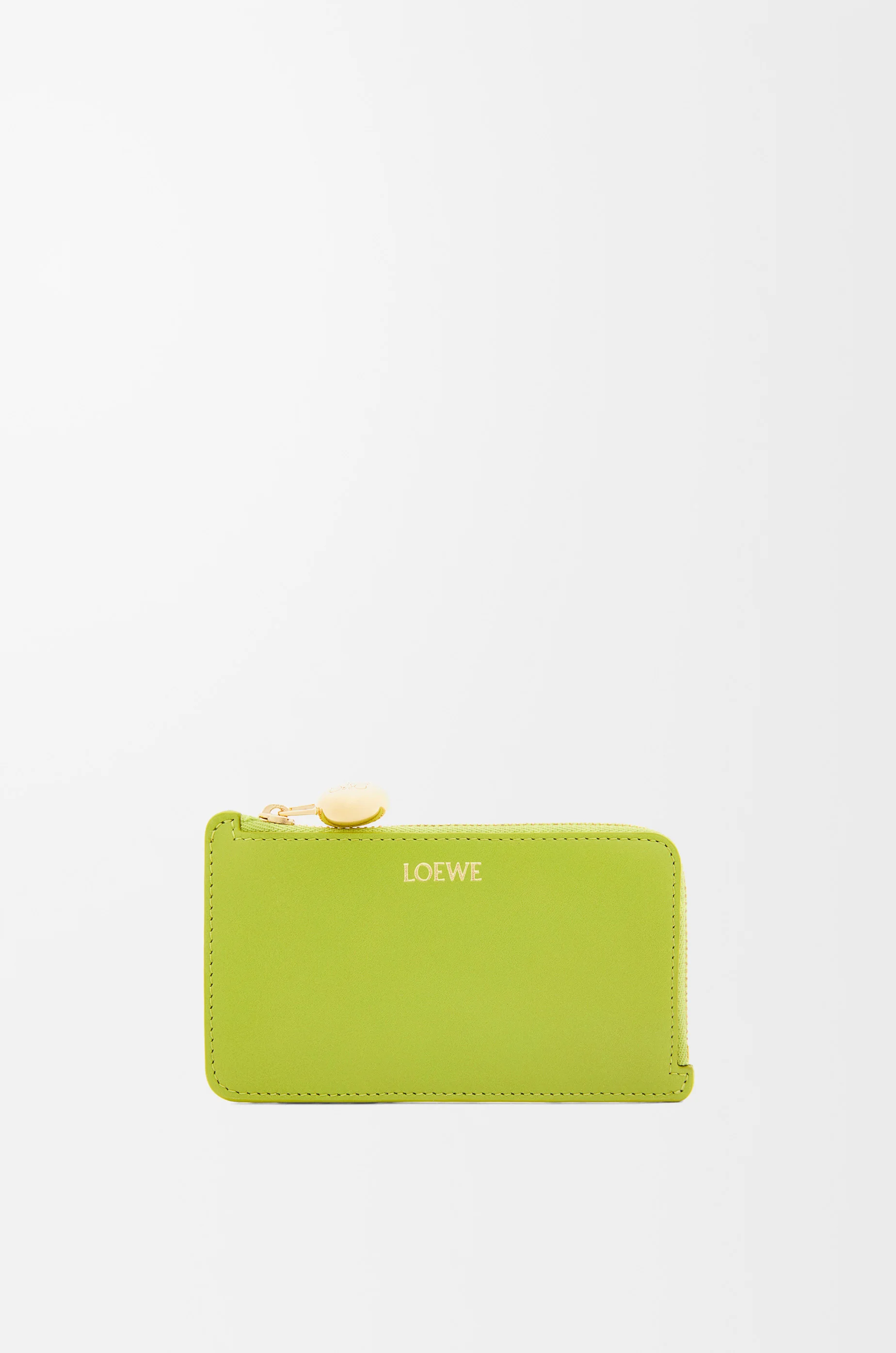 Coin cardholder in shiny nappa calfskin featuring a signature Pebble zip pull. - Zipped coin compartment with Anagram engraved Pebble pull - Four card slots - Gold embossed LOEWE Details - Colour: Meadow Green - Metallic colour: Gold - Main material: Shiny Nappa Calf - Weight: 0.05 kg - Height (cm): 7.5 - Width (cm): 13 - Depth (cm): 1 - Height (inch): 3 - Width (inch): 5.1 - Depth (inch): 0.4 - Model ID: CANBZ40X01 - CIL: 0011083631 - Made in: Spain