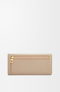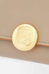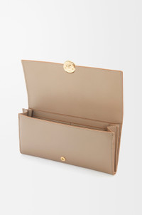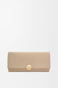 Continental wallet in shiny nappa calfskin featuring a signature Pebble closure. - Zipped back pocket - Zipped coin compartment, ten card slots and two large pockets for notes - Snap button closure with Anagram engraved Pebble - Calfskin lining Details - Colour: Sand - Metallic colour: Gold - Main material: Shiny Nappa Calf - Weight: 0.18 kg - Height (cm): 10 - Width (cm): 20 - Depth (cm): 2.5 - Height (inch): 3.9 - Width (inch): 7.9 - Depth (inch): 1 - Model ID: CANBACWX01 - CIL: 0011035466 - Made in: Spain