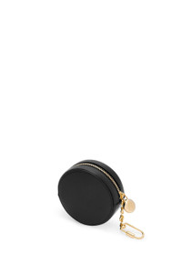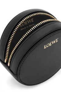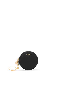 Functional and wearable cookie key holder in shiny nappa calfskin featuring a signature Pebble zip pull. - Zipped coin compartment with Anagram engraved Pebble pull - Donut chain with screw fastening - Gold embossed LOEWE Details - Colour: Black - Metallic colour: Gold - Main material: Shiny Nappa Calf - Weight: 0.08 kg - Height (cm): 8.5 - Width (cm): 8.5 - Depth (cm): 3.5 - Height (inch): 3.3 - Width (inch): 3.3 - Depth (inch): 1.4 - Model ID: CANB419X01 - CIL: 0011035441 - Made in: Spain