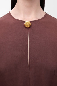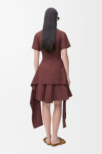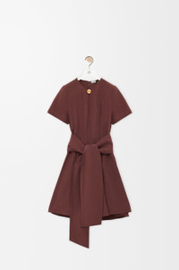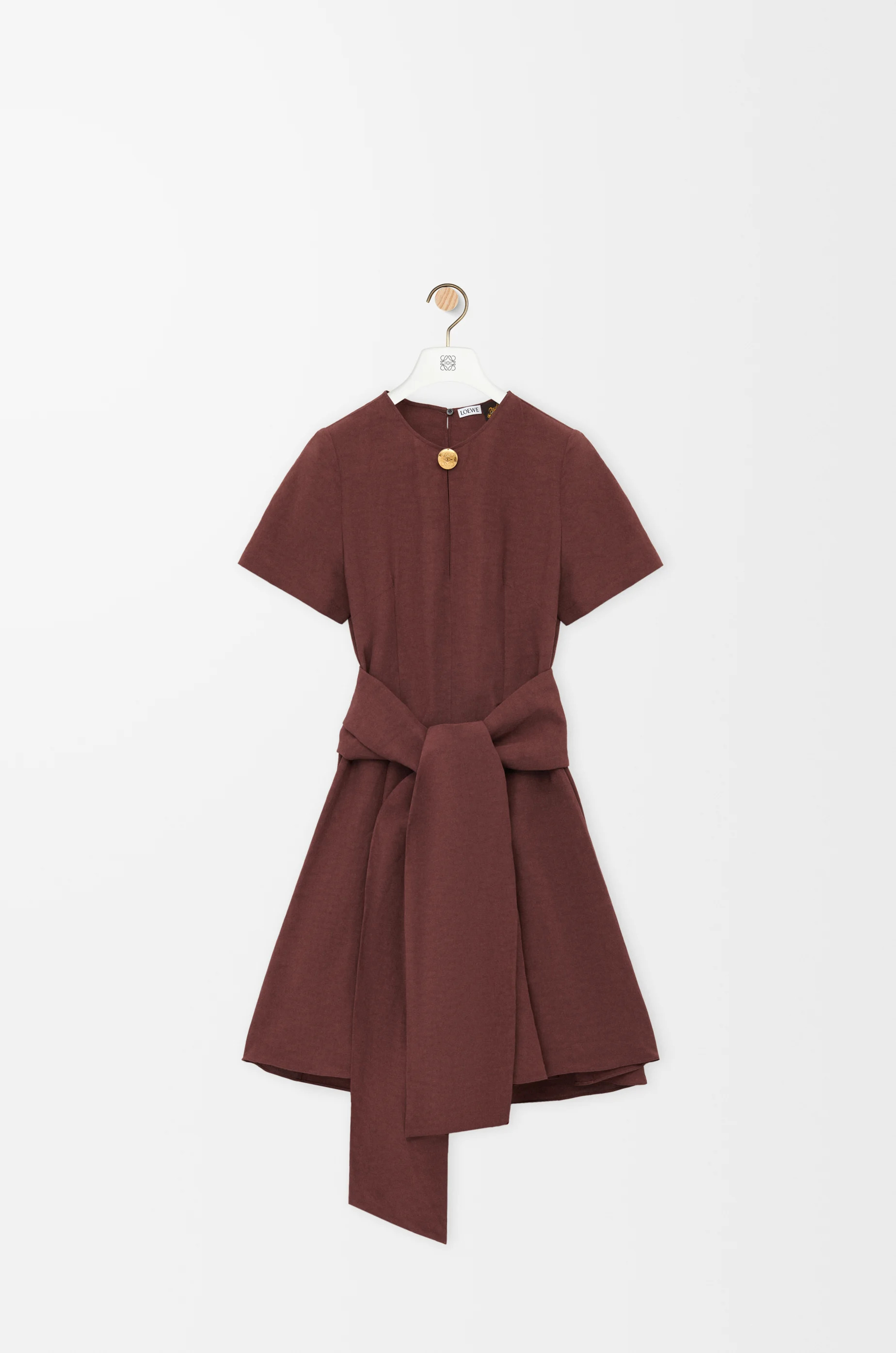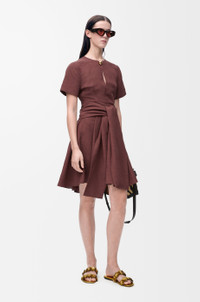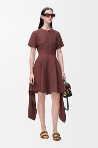 Dress in lightweight viscose and linen toile featuring a keyhole neckline with an Anagram pebble embellishment and panels that can be tied at the front. - Regular fit, short length - Button fastening at the back collar - Concealed side zip fastening Colour: Coffee Main material: Viscose/Linen Weight: 0.5 kg Made in: Italy