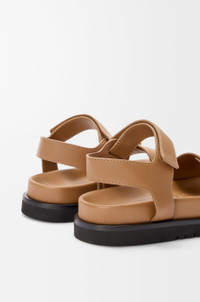 Fussbett sandal in soft calfskin featuring a signature petal toe shape, a gold-finish Anagram Pebble on the upper and a double sole. - 10mm heel - Adjustable Velcro strap closure - Engraved Anagram - Nappa-covered padded insole, rubber outsole Colour: Oak Main material: Soft Calf Weight: 0.6 kg Made in: Italy