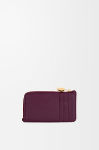 Coin cardholder in pebble grained calfskin featuring a signature Anagram Pebble zip pull. - Four card slots, one zipped coin compartment - Gold or silver embossed LOEWE - Engraved Anagram Colour: Plum Metallic colour: Gold Main material: Mini grain claf Weight: 0.05 kg Height: 7.5 cm Width: 13 cm Depth: 1 cm Made in: Spain