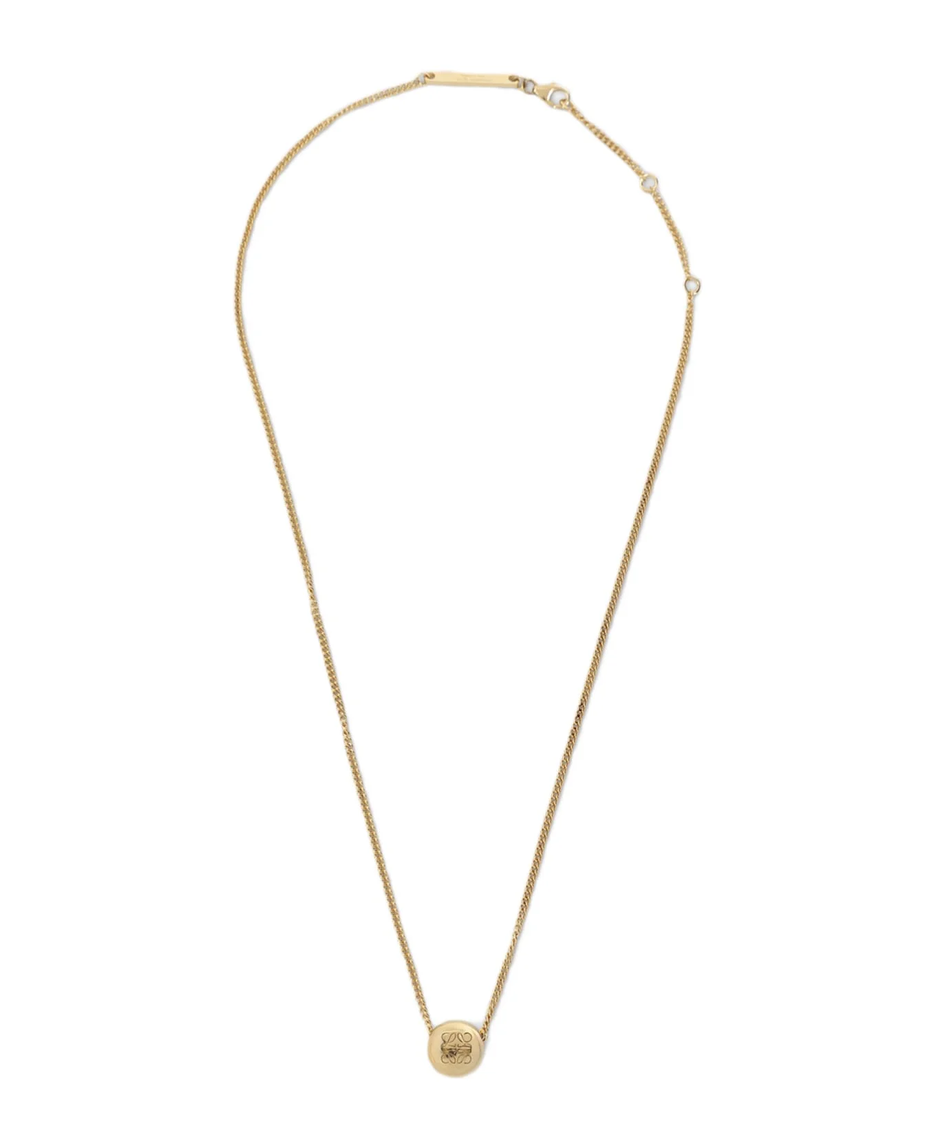Loewe Pebble Pendant Gold Silver Necklace. Crafted from sterling silver with a gold finish, it features an Anagram Pebble charm, a lobster clasp fastening, and an adjustable fit. Made in: Italy Color: Gold Model number: JJ07241X038130