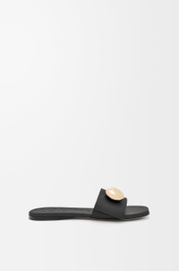 Slide in soft calfskin featuring a petal toe shape and a gold-finish Anagram Pebble on the upper. - 5mm heel - Engraved Anagram on Pebble - Leather outsole Colour: Black Main material: Soft Calf Weight: 0.4 kg Made in: Italy