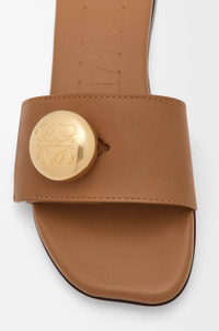 Slide in soft calfskin featuring a petal toe shape and a gold-finish Anagram Pebble on the upper. - 5mm heel - Engraved Anagram on Pebble - Leather outsole Colour: Oak Main material: Soft Calf Weight: 0.4 kg Made in: Italy