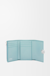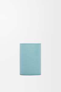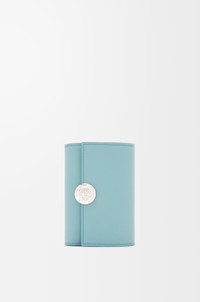 Small vertical wallet in shiny nappa calfskin featuring a signature Anagram Pebble closure. - Six card slots, two small pockets, one large pocket - One zipped coin compartment - Snap button closure - Calfskin lining - Gold embossed LOEWE, engraved Anagram Details - Colour : Water - Metallic colour : Palladium - Main material : Shiny Nappa Calf - Weight : 0.09 kg - Height (cm) : 8.2 - Width (cm) : 11.8 - Depth (cm) : 3 - Height (inch) : 3.2 - Width (inch) : 4.6 - Depth (inch) : 1.2 - Model ID : CANBS33X01 - CIL : - 0011189677 - Made in : Spain
