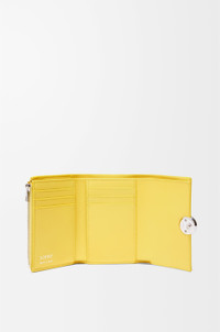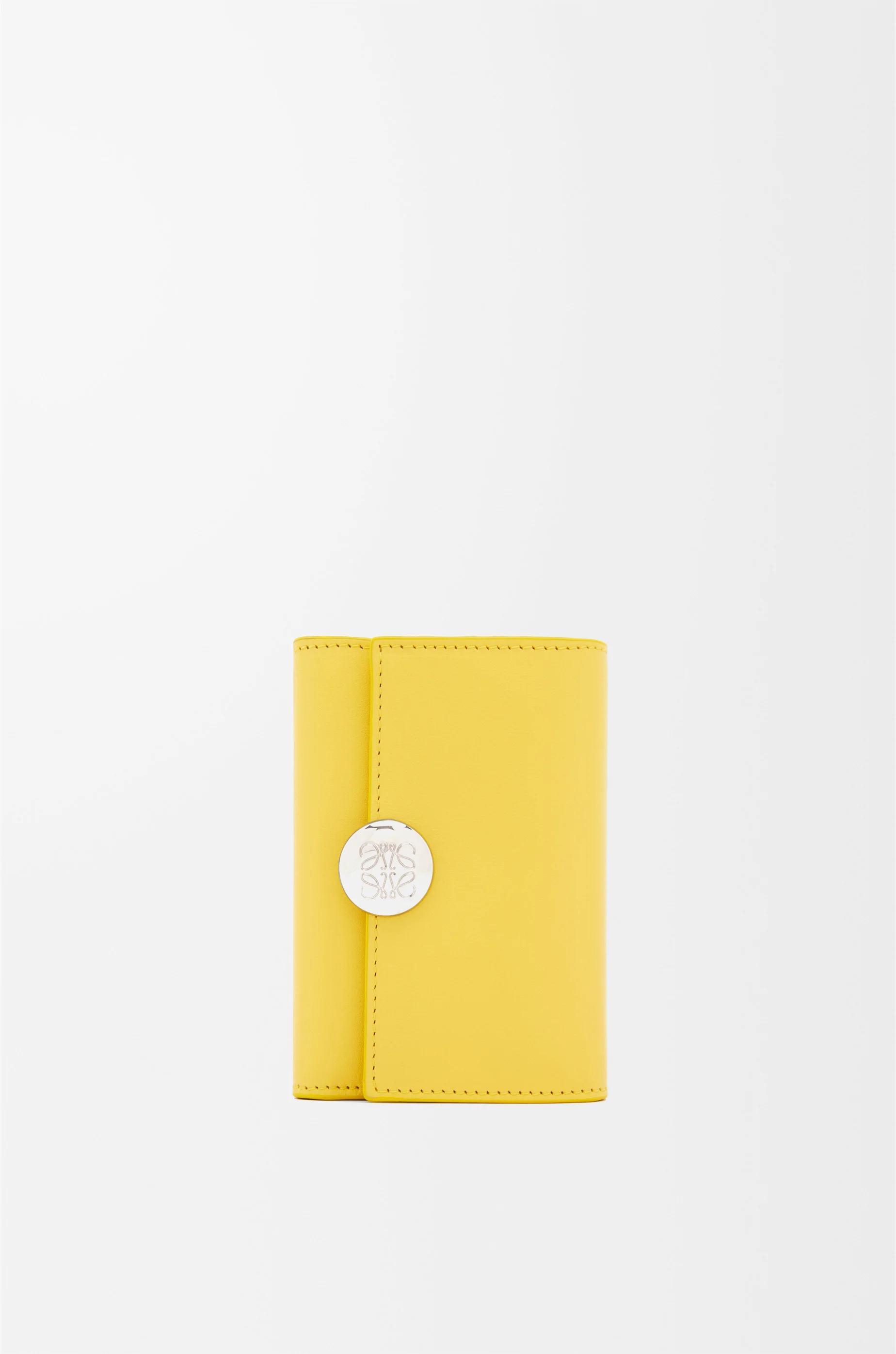 Small vertical wallet in shiny nappa calfskin featuring a signature Pebble closure. - Six card slots - Two small pockets and one larger pocket - Zipped coin compartment - Snap button closure with Anagram engraved Pebble - Calfskin lining - Gold embossed LOEWE Details - Colour : Baby Corn - Metallic colour : Palladium - Main material : Shiny Nappa Calf - Weight : 0.09 kg - Height (cm) : 8.2 - Width (cm) : 11.8 - Depth (cm) : 3 - Height (inch) : 3.2 - Width (inch) : 4.6 - Depth (inch) : 1.2 - Model ID : CANBS33X01 - CIL : - 0011182318 - Made in : Spain
