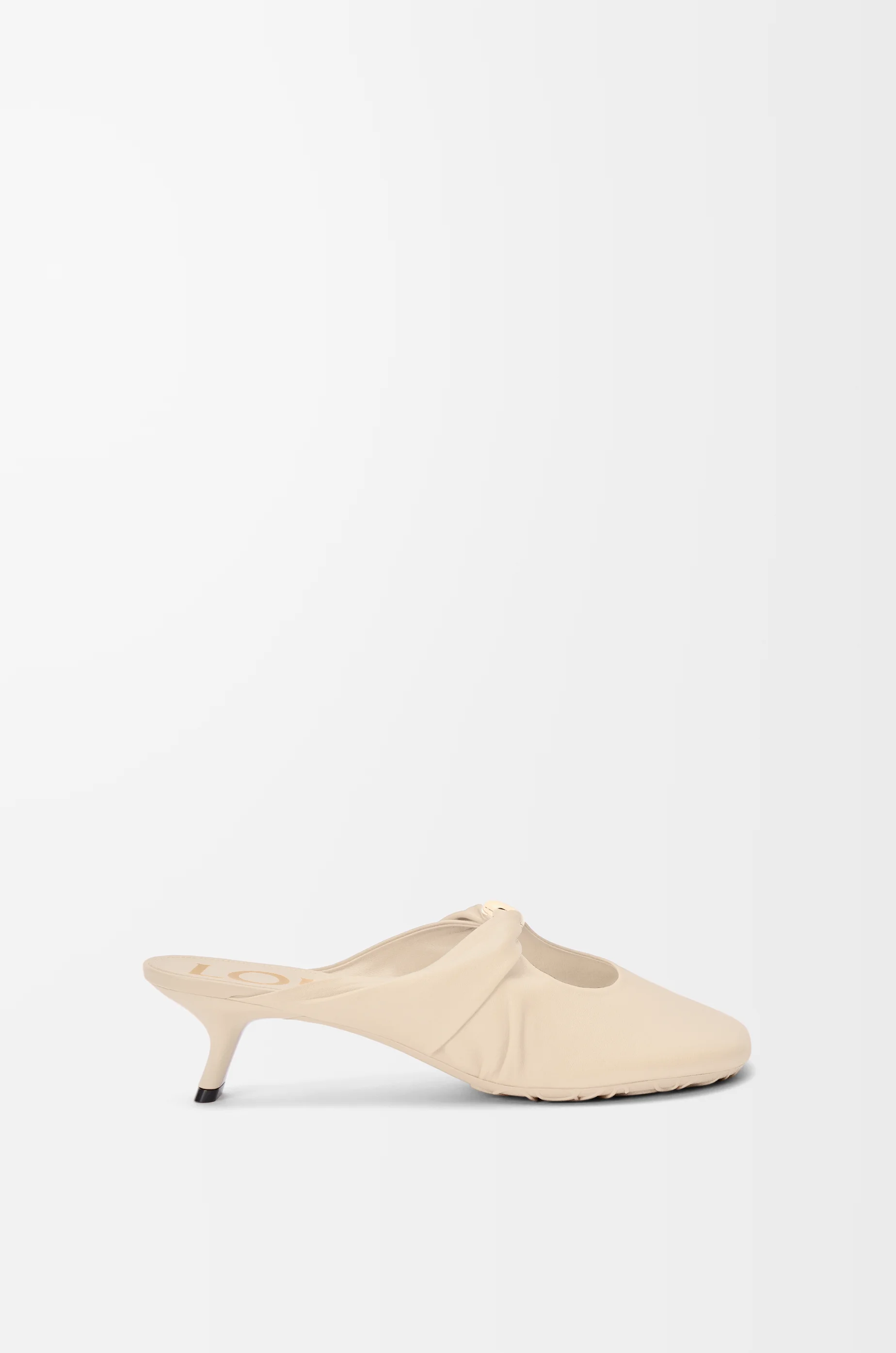 Mule in supple nappa lambskin with a flexible upper engineered for extra comfort, featuring a metallic pebble with an Anagram engraved detail and a signature petal toe shape. - 45mm heel - Engraved Anagram on Pebble - Padded leather insole - Anagram embossed rubber outsole Colour: Dough Main material: Nappa Lambskin Weight: 0.4 kg Made in: Italy