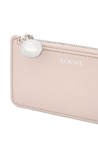 Coin cardholder in shiny nappa calfskin featuring a signature Anagram Pebble zip pull. - Four card slots, one zipped coin compartment - Gold embossed LOEWE, engraved Anagram Details - Colour : Talc - Metallic colour : Palladium - Main material : Shiny Nappa Calf - Weight : 0.05 kg - Height (cm) : 7.5 - Width (cm) : 13 - Depth (cm) : 1 - Height (inch) : 3 - Width (inch) : 5.1 - Depth (inch) : 0.4 - Model ID : CANBZ40X01 - CIL : - 0011191483 - Made in : Spain