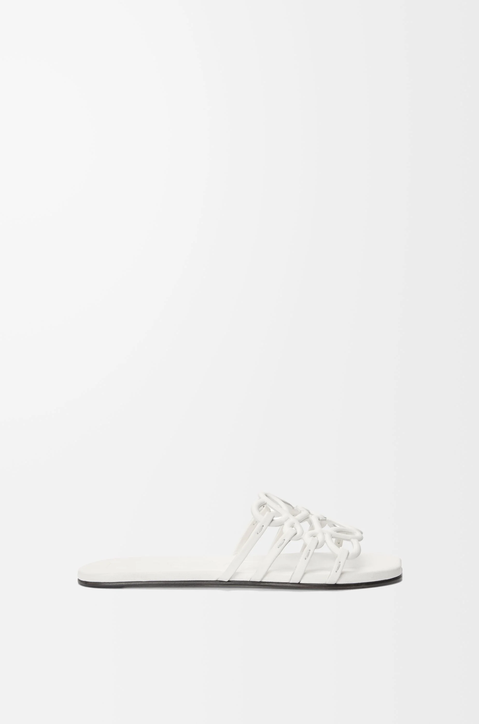 Slide in soft calfskin featuring a cut-out Anagram upper with hand-painted edges and hand-stitched seams. - 5mm heel - Embossed LOEWE on the insole - Padded leather insole - Rubber-injected island on the outsole - Hand-stitched seams Colour: Anthurium White Main material: Calfskin Weight: 0.4 kg Made in: Italy