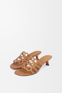 Slide in soft calfskin featuring a cut-out Anagram upper with hand-painted edges and hand-stitched seams. - 45mm heel - Embossed LOEWE insole - Padded leather insole - Rubber-injected island on the outsole Colour: Camel Main material: Calfskin Weight: 0.4 kg Made in: Italy