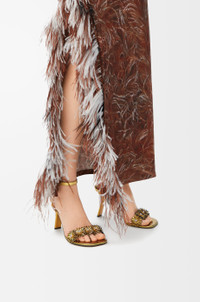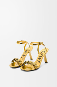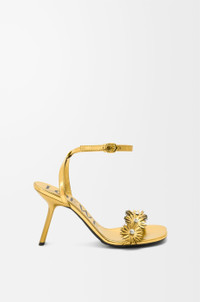 Sandal in metallic calfskin and crystals featuring a strappy upper with hand-applied floral embellishments, a signature petal toe shape and a slanted heel. - 90mm heel - Adjustable ankle strap - Anagram debossed rubber outsole Colour: Gold Main material: Metallic Calfskin/ Crystals Weight: 0.4 kg Made in: Italy
