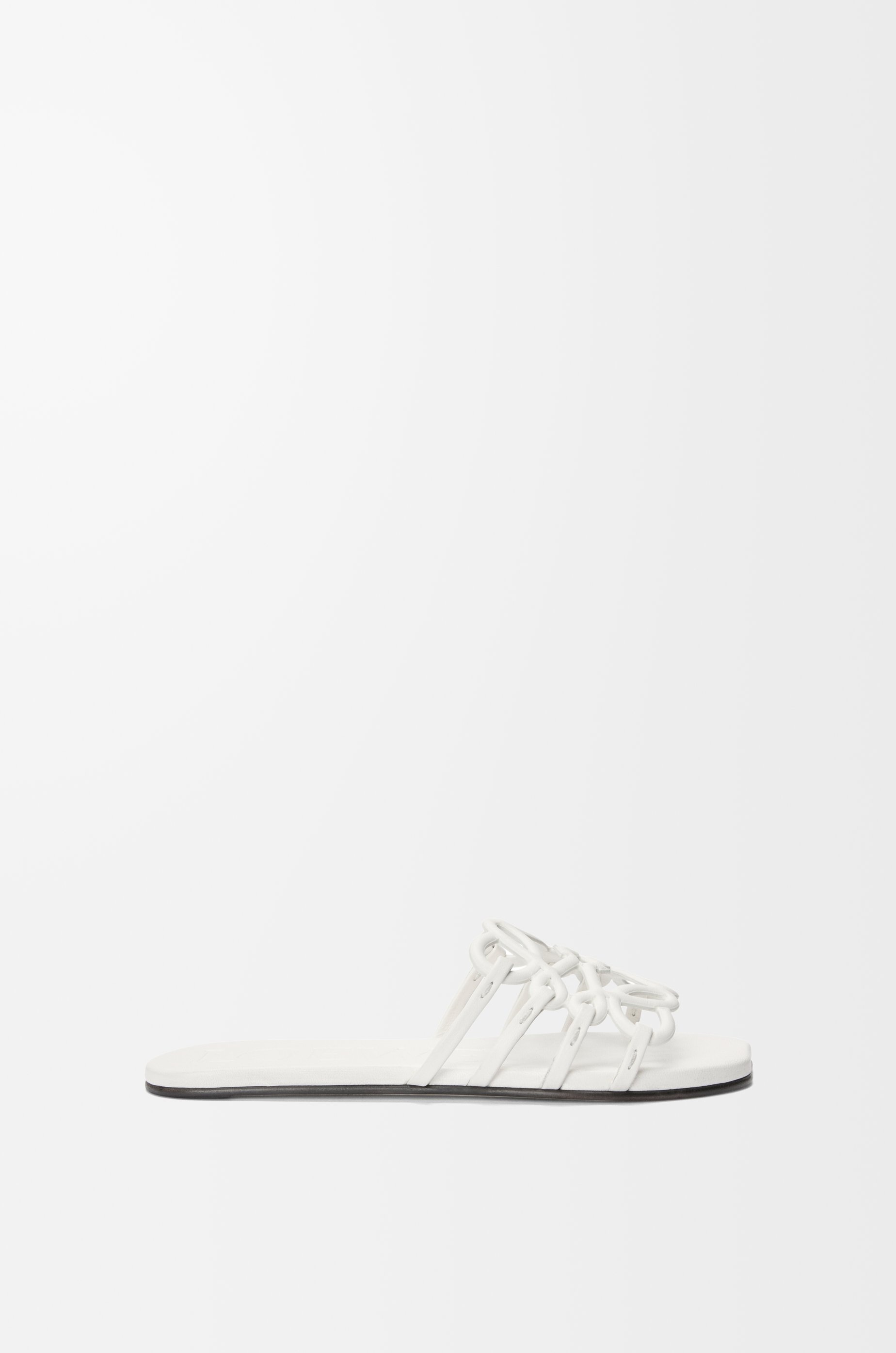 Slide in soft calfskin featuring a cut-out Anagram upper with hand-painted edges and hand-stitched seams. - 5mm heel - Embossed LOEWE on the insole - Padded leather insole - Rubber-injected island on the outsole - Hand-stitched seams Details - Colour : Anthurium White - Main material : Calfskin - Heel height : 0.5 - Weight : 0.3 kg - Model ID : LLSP465X08 - Made in : Italy