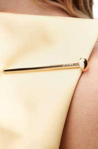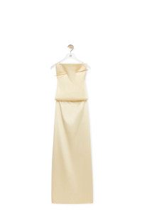Dress crafted in lightweight stretch silk double satin. - Regular fit - Long length - Elongated silhouette - Oversized metal pin across the front - Square neckline - Thin straps - Open back - Rear zip fastening - Back vent Details - Colour: Pale Banana - Main material: Silk/Elsatane - Weight: 0.6 kg - Model ID: S540Y09XOB - Made in: Italy