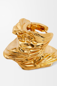Pleated Fan hoop earrings crafted in sterling silver with a gold finish from an original shape exclusively hand pleated by artist Lynda Benglis as part of a special LOEWE x Lynda Benglis collaboration. - Engraved L BENGLIS signature - Engraved LOEWE Details - Colour : Gold - Metallic colour : Gold - Main material : Sterling Silver - Weight : 0.0156 kg - Model ID : JJL1239X01 - CIL : - 0011037587 - Made in : Italy