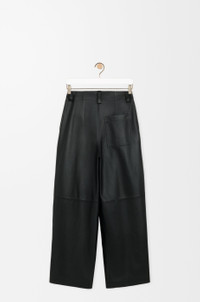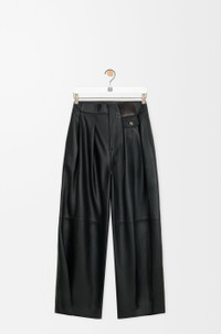Trousers in lightweight nappa lambskin featuring pleats at the front. - Relaxed fit, regular length - Mid waist, loose leg - Concealed button fly - Buttoned coin pocket, seam pockets and rear patch pocket - Partially lined - LOEWE embossed leather patch placed at the front Colour: Black Main material: Nappa Weight: 1.01 kg Made in: Spain Materials & care Main Material: 100% lambskin