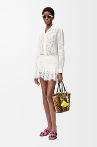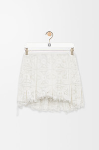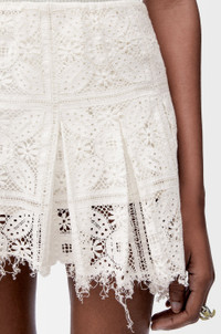 Skirt in lightweight cotton blend lace featuring pleated construction with an asymmetric frayed hem. - Regular fit, mini length - Low waist - Side zip fastening - Seam pockets - Built-in shorts Colour: White Main material: Cotton/Polyamide Weight: 0.3 kg
