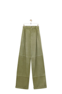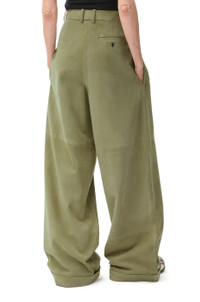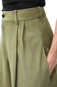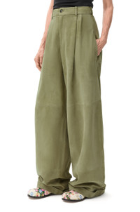 Trousers crafted in lightweight suede lambskin. - Relaxed fit - Long length - Mid waist - Loose leg - Low crotch - Concealed zip fastening - Horn buttons - Pleats at the front - Seam pockets - Buttoned rear welt pocket - Cuffed hem - Half lined Details - Colour : Sage - Main material : Suede - Weight : 1.0 kg - Model ID : S540Y54LAA - Made in : Spain