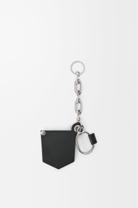 Pocket charm in calfskin with a chain and details in brass. - Dogclip and hoop fastening - Embossed Anagrram Colour: Black/Silver Metallic colour: Palladium Main material: Brass/leather Weight: 0.08 kg Width: 16 cm Depth: 9 cm Made in: Spain