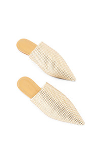 Slippers in suede and crystal with a pointed toe. - Leather insole and lining Details - Colour: Champagne - Main material: Suede/Strass - Heel height: 0.5 - Weight : 0.4 kg - Model ID: L815291X18 - Made in: Italy