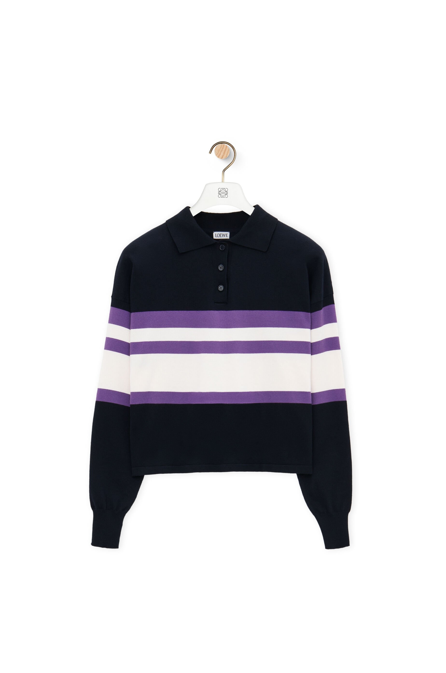 Sweater crafted in lightweight striped cotton knit. - Jersey stitch - Regular fit - Short length - Two-tone colour-block stripes - Polo collar - Ribbed cuffs - Anagram embroidery placed at the back Details - Colour: Deep Blue / Yellow / Purple - Main material: Coton - Weight: 0.2 kg - Model ID: S359Y14KFQ - Made in: Italy