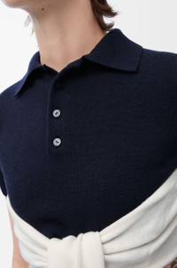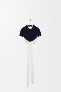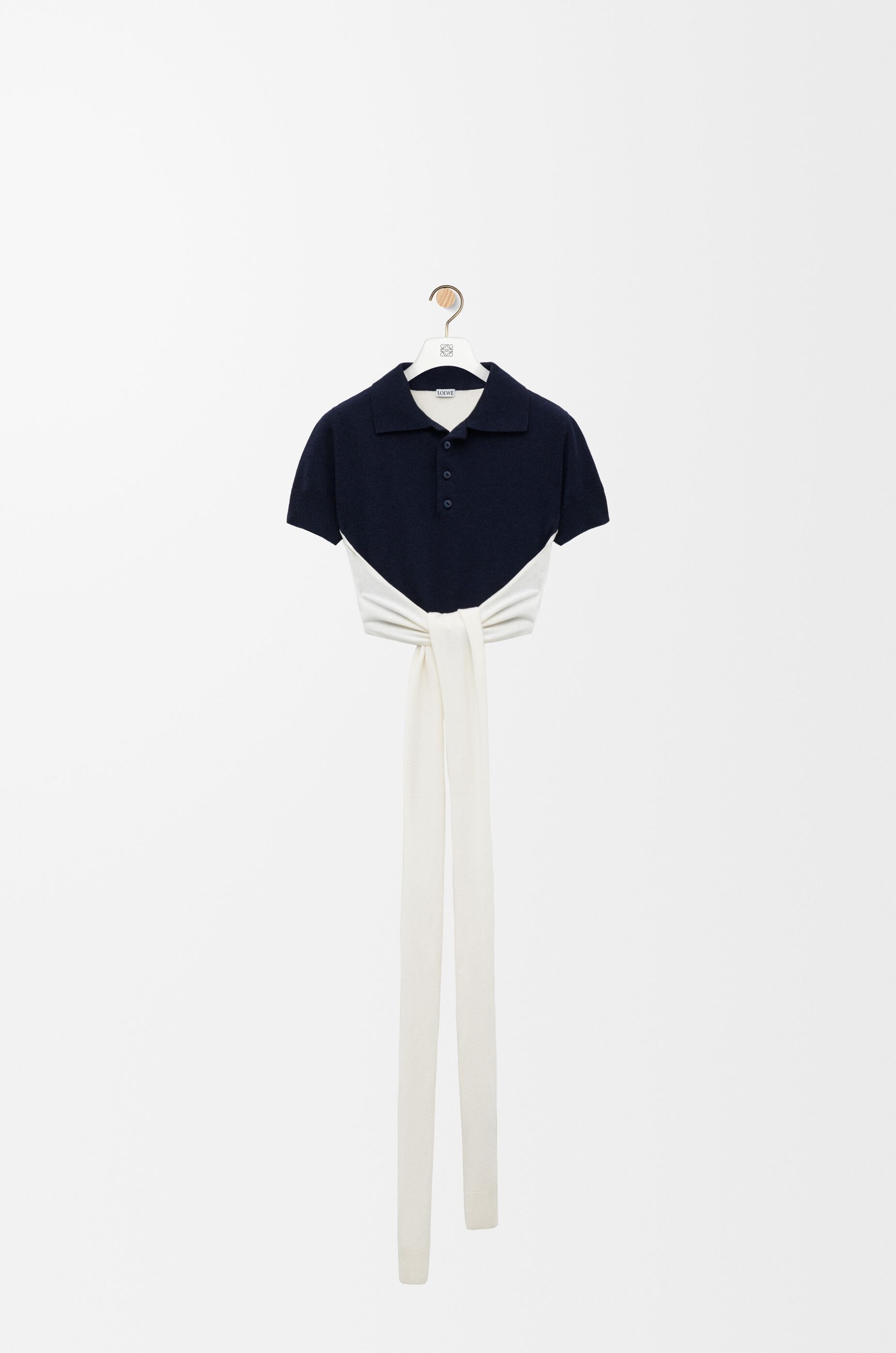 Sweater in medium-weight wool and cashmere featuring an open back with a contrast self-tie belt. - Slim fit, cropped length - Jersey stitch - Polo collar with button fastening Details - Colour : Navy/Ecru - Main material : Wool/Cashmere - Weight : 0.2 kg - Model ID : S540Y55K26 - Made in : Italy