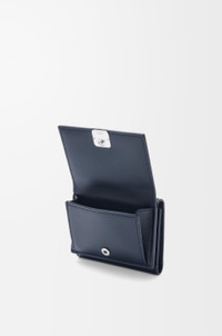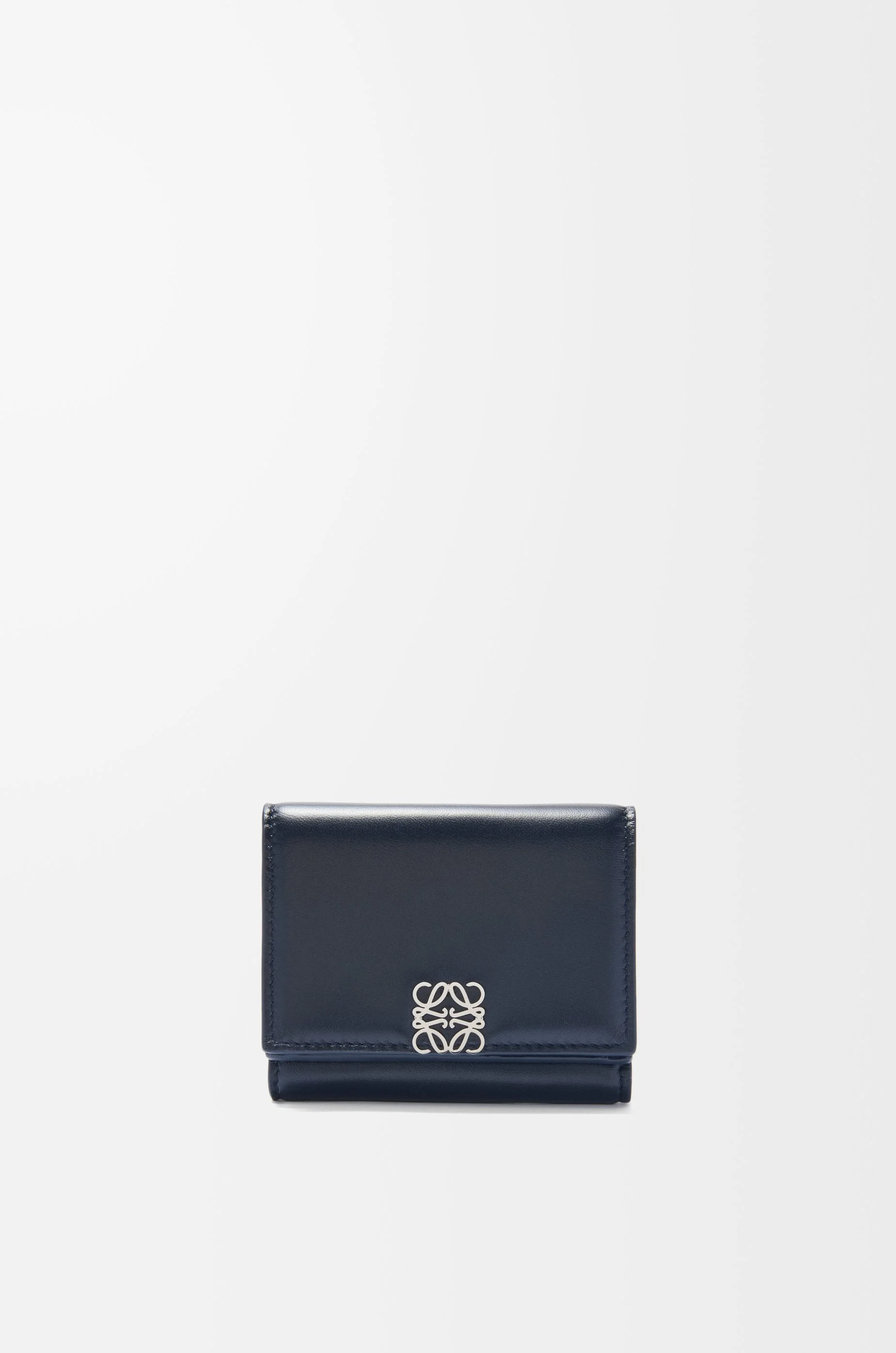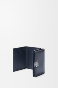 Trifold wallet in shiny nappa calfskin with a soft padded look. - Four internal pockets including one snap button pocket, six card slots - Snap button closure - Calfskin lining - Metal Anagram Details - Colour : Deep Navy - Metallic colour : Palladium - Main material : Shiny Nappa Lambskin - Weight : 0.1 kg - Height (cm) : 7.8 - Width (cm) : 10.2 - Depth (cm) : 3.8 - Height (inch) : 3.1 - Width (inch) : 4 - Depth (inch) : 1.5 - Model ID : C821TR2X10 - CIL : - 0011191707 - Made in : Spain
