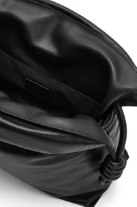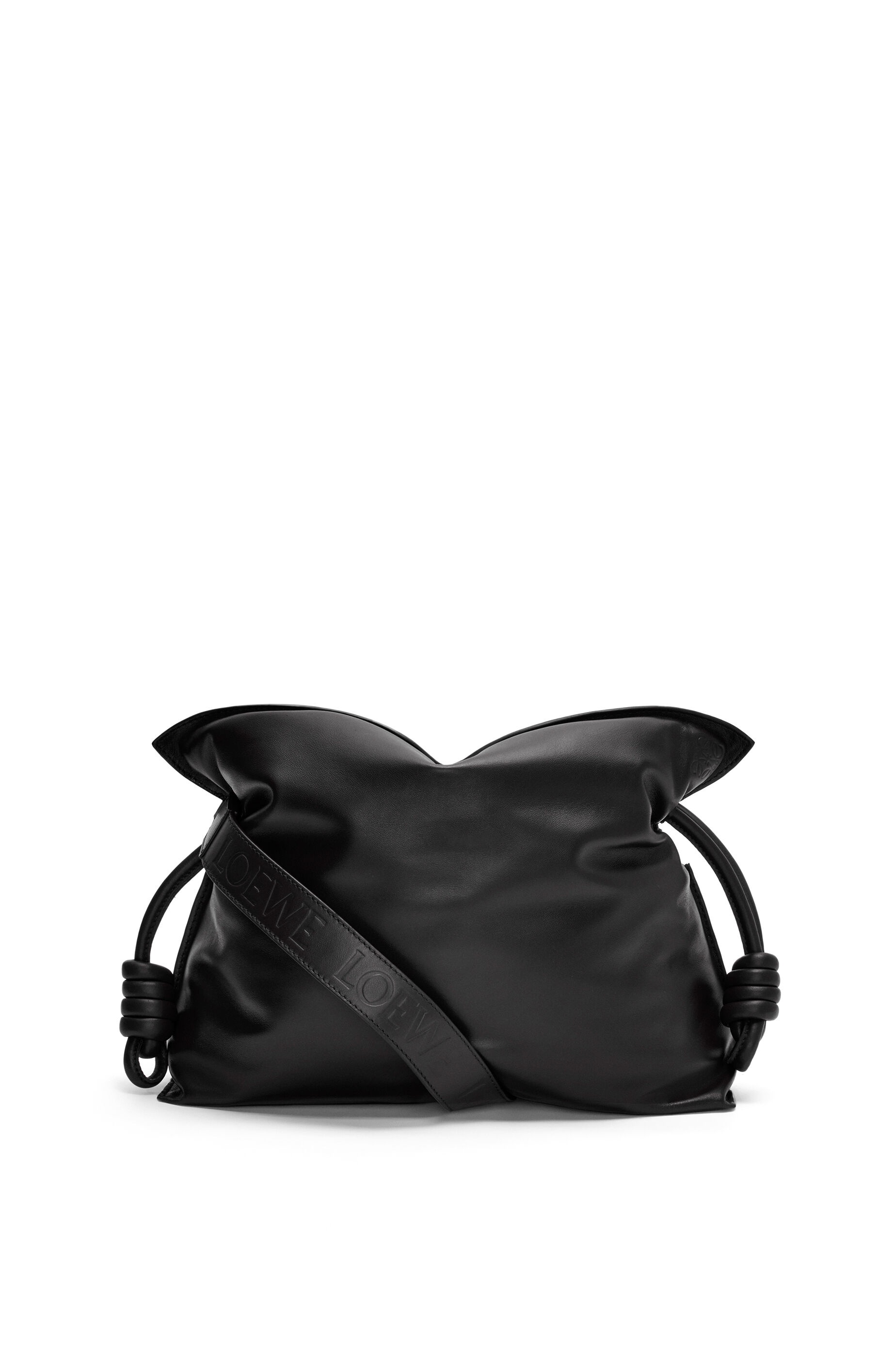 Launched in the 1970s, the Flamenco Clutch cinches closed using drawstring pulls finished in signature coiled knots. This new puffer version is crafted in shiny nappa calfskin and padded with goose feathers. It comes with a detachable strap embossed with LOEWE on one side and with Anagrams on the reverse. - Shoulder, crossbody or hand carry - Detachable and adjustable strap - Discreet magnetic closure - Herringbone cotton canvas lining - Embossed Anagram Details - Colour: Black - Metallic colour: Gold - Main material: Shiny Nappa Lambskin - Strap length: 105 cm - Weight : 0.45 kg - Height (cm): 24.5 - Width (cm): 30 - Depth (cm): 10.5 - Height (inch): 9.6 - Width (inch): 11.8 - Depth (inch): 4.1 - Model ID: A411FC1X67 - CIL: 0010788487 - Made in: Spain