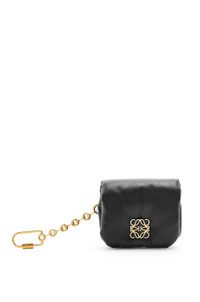 Miniature take on the Puffer Goya bag crafted in shiny nappa calfskin with an Anagram snap button closure. Details - Colour: Black - Metallic colour: Gold - Main material: Shiny Nappa Lambskin - Weight: 0.054 kg - Height (cm): 2 - Width (cm): 8 - Depth (cm): 6 - Height (inch): 0.8 - Width (inch): 3.1 - Depth (inch): 2.4 - Model ID: C560O36X05 - CIL: 0010899516 - Made in: Spain