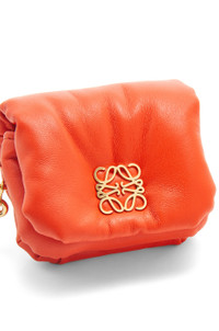 Miniature take on the Puffer Goya bag crafted in shiny nappa calfskin with an Anagram snap button closure. Details - Colour: Sunrise Orange - Metallic colour: Gold - Main material: Shiny Nappa Lambskin - Weight: 0.054 kg - Height (cm): 2 - Width (cm): 8 - Depth (cm): 6 - Height (inch): 0.8 - Width (inch): 3.1 - Depth (inch): 2.4 - Model ID: C560O36X05 - CIL: 0010899532 - Made in: Spain