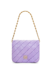 Inspired by the Goya aesthetic, the Puffer Goya is bringing a new sensorial and tactile dimension, thanks to the shiny nappa lambskin emphasized by the goose feathers padding. It comes with a detachable metal donut chain and a removable and adjustable leather strap. This version is in pleated lambskin that is cut, sewn and then woven by hand. - Shoulder or clutch carry - Magnetic closure - This bag comes with one detachable chain and one leather strap - One main compartment, one zipped pocket and one slip pocket - Lined in nappa lambskin Details - Colour: Light Mauve - Metallic colour: Gold - Main material: Shiny Nappa Lambskin - Strap length: 64; 111 - 129 cm - Weight: 0.69 kg - Height (cm): 17 - Width (cm): 23 - Depth (cm): 9 - Height (inch): 6.7 - Width (inch): 9.1 - Depth (inch): 3.5 - Model ID: A896P41X14 - CIL: 0010859825 - Made in: Spain
