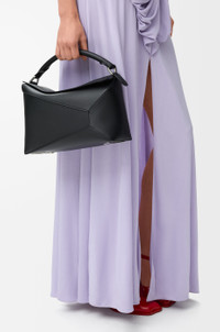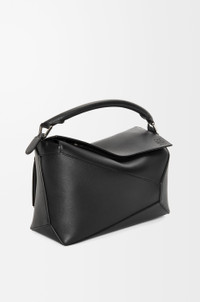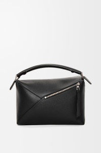 The Puzzle Edge is defined by its distinctive geometric lines and its cuboid form. It differs to the classic construction in its overlapped panels with single stitch lines. This medium version is crafted in classic calfskin. - Shoulder, crossbody or hand carry - Detachable and adjustable strap - Zip closure with calfskin pull - One external zip rear pocket, two internal slip pockets - Herringbone cotton canvas lining - Embossed Anagram Colour: Black Metallic colour: Palladium Main material: Classic Calf Strap length: 78-116 cm Strap drop: 36 - 55 cm Handle drop: 9 cm Weight: 0.78 kg Height: 19.5 cm Width: 29 cm Depth: 14 cm Made in: Spain