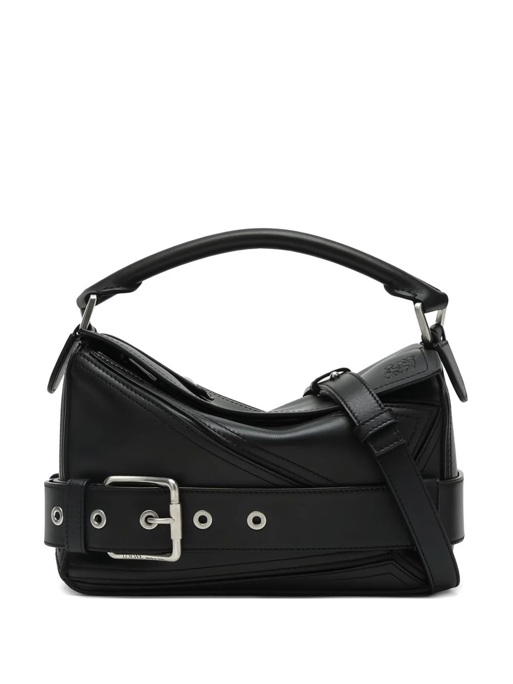 Puzzle buckle tote bag Highlights - Black - Leather construction - Buckle detail - Top handle - Zip closure - Panelled design Imported Composition Outer: Calf Leather 100% Lining: Cotton 100% SIZE & FIT Measurement DEPTH 4.13 in(10.5 cm) HEIGHT 6.49 in(16.5 cm) WIDTH 9.44 in(24 cm)