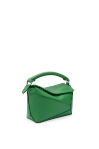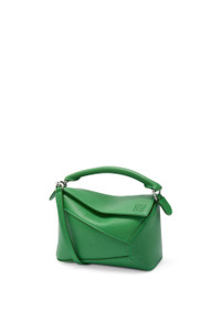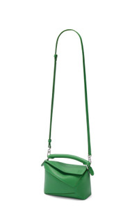 The Puzzle bag is the debut bag for LOEWE by Creative Director Jonathan Anderson. A cuboid shape and precise cutting technique create Puzzle’s distinctive geometric lines. This mini version is crafted in soft grained calfskin. - Shoulder, crossbody or hand carry - Detachable and adjustable strap, top handle - Zip closure with calfskin pull - Herringbone cotton canvas lining - Embossed Anagram Details - Colour : Tropical Green - Metallic colour : Palladium - Main material : Soft Grained Calf - Strap length : 108.5 - 137 cm - Strap Drop : 54.5 - 68.5 cm - Handle drop : 4 cm - Weight : 0.27 kg - Height (cm) : 12.5 - Width (cm) : 18 - Depth (cm) : 8 - Height (inch) : 4.9 - Width (inch) : 7.1 - Depth (inch) : 3.1 - Model ID : A510P88X41 - CIL : - 0011207933 - Made in : Spain