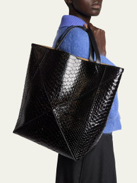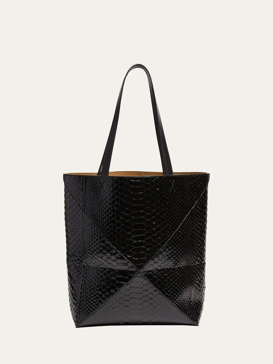 Puzzle Fold Large Patent Python-Embossed Tote Bag