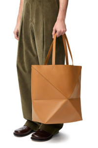 The Puzzle Fold tote is a soft and lightweight design inspired by the iconic bag, whose geometric lines are reimagined as graphic and architectural panels engineered to fold completely flat. This XL version is crafted in shiny calfskin. - Shoulder or hand carry - Suede lining - Gold embossed LOEWE Details - Colour : Warm Desert - Main material : Shiny Calf - Handle drop : 26 cm - Weight : 0.6 kg - Height (cm) : 41 - Width (cm) : 42 - Depth (cm) : 18 - Height (inch) : 16.1 - Width (inch) : 16.5 - Depth (inch) : 7.1 - Model ID : B933Q18X01 - CIL : - 0011090107 - Made in : Spain