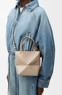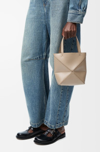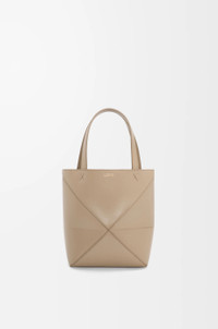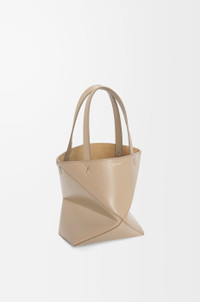 The Puzzle Fold tote is a soft and lightweight design inspired by the iconic bag, whose geometric lines are reimagined as graphic and architectural panels engineered to fold completely flat. This mini version is crafted in shiny calfskin. - Shoulder, crossbody or hand carry - Detachable and adjustable strap - Suede lining - Gold or silver embossed LOEWE Details - Colour : Sand - Metallic colour : Gold - Main material : Shiny Calf - Strap length : 99 - 114 cm - Strap Drop : 48 - 55 cm - Handle drop : 14 cm - Weight : 0.2 kg - Height (cm) : 20 - Width (cm) : 16.5 - Depth (cm) : 9.5 - Height (inch) : 7.9 - Width (inch) : 6.5 - Depth (inch) : 3.7 - Model ID : A657V25X01 - CIL : - 0011190659 - Made in : Spain
