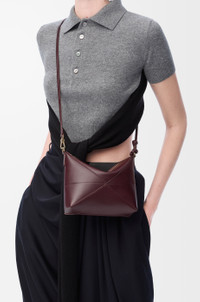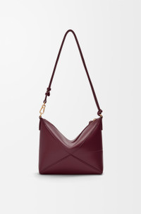 The Puzzle Fold's lightweight geometric structure is designed to fold completely flat, making it a perfect tote to travel with. This version is crafted in shiny nappa calfskin. - Shoulder, crossbody or hand carry - Detachable and adjustable strap - Zip closure - Suede lining - Gold or silver embossed LOEWE Details - Colour : Dark Burgundy - Metallic colour : Gold - Main material : Shiny Nappa Calf - Strap length : 52- 95 cm - Strap Drop : 23 - 45 cm - Weight : 0.17 kg - Height (cm) : 15.5 - Width (cm) : 23 - Depth (cm) : 6.5 - Height (inch) : 6.1 - Width (inch) : 9.1 - Depth (inch) : 2.6 - Model ID : C510PT1X01 - CIL : - 0011191368 - Made in : Spain