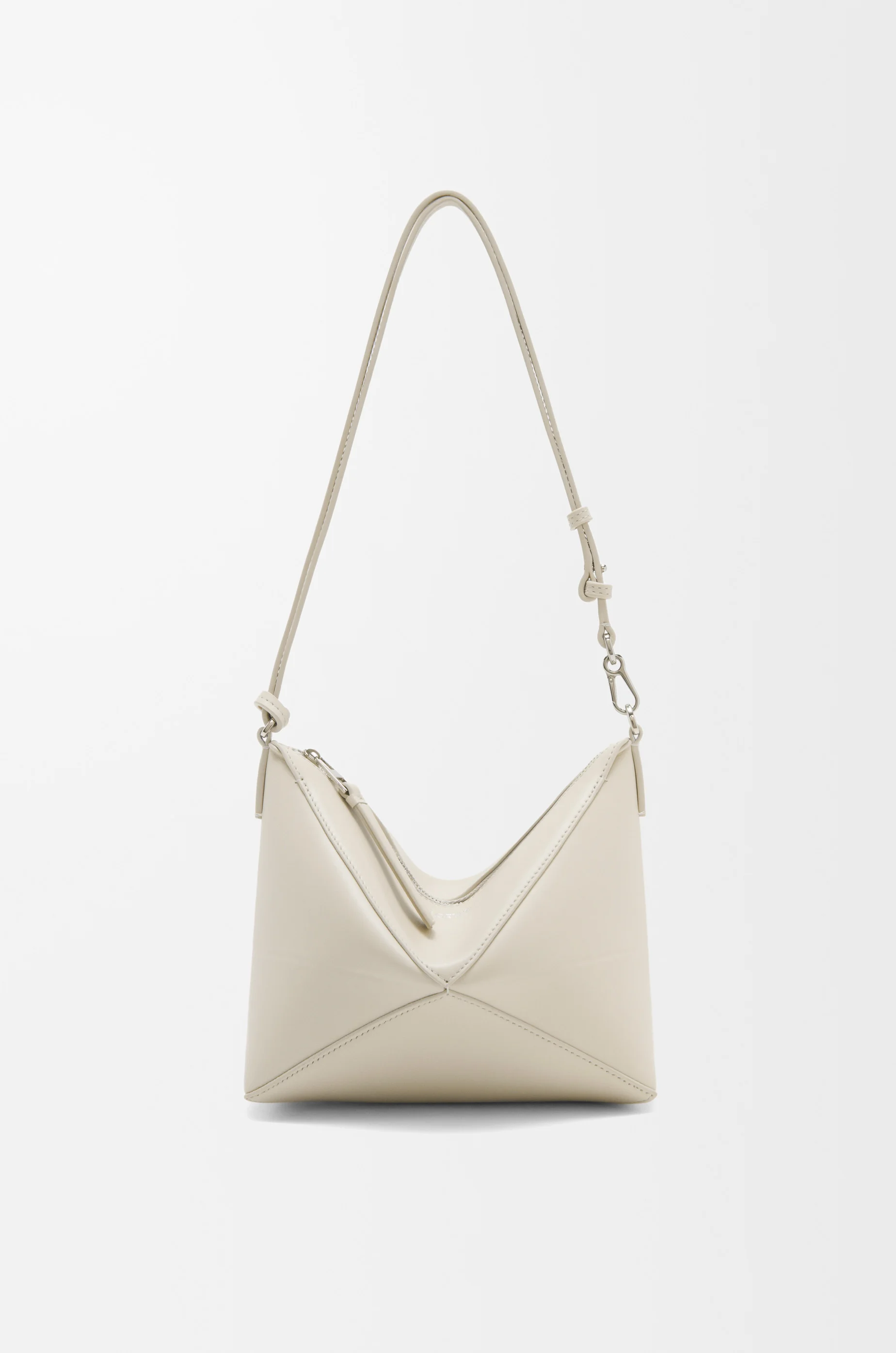 Revisited as a functional and versatile pouch, the Puzzle Fold takes the iconic bag’s signature geometric lines and reimagines them in graphic and architectural panels. This version is crafted in shiny nappa calfskin. - Can be carried on the shoulder, crossbody or inside a bag - Detachable and adjustable strap - Zip closure - Suede lining - Gold embossed LOEWE Details - Colour: Sea Salt - Metallic colour: Palladium - Main material: Shiny Nappa Calf - Strap length: 52- 95 cm - Weight: 0.17 kg - Height (cm): 15.5 - Width (cm): 23 - Depth (cm): 6.5 - Height (inch): 6.1 - Width (inch): 9.1 - Depth (inch): 2.6 - Model ID: C510PT1X01 - CIL: 0011083540 - Made in: Spain