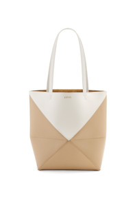 The Puzzle Fold Tote takes the iconic bag’s signature geometric lines and reimagines them in graphic and architectural panels that allow the bag to fold completely flat, making it the perfect travel companion. Soft, lightweight and inventively crafted, it is finished with discreet LOEWE branding. This medium version is crafted in shiny nappa calfskin. - Shoulder or hand carry - Suede lining - Gold embossed LOEWE Details - Colour: Soft White/Paper Craft - Main material: Shiny Calf - Handle drop: 27 cm - Weight: 0.42 kg - Height (cm): 31.5 - Width (cm): 25.5 - Depth (cm): 14.5 - Height (inch): 12.4 - Width (inch): 10 - Depth (inch): 5.7 - Model ID: A779G50X18 - CIL: 0010972917 - Made in: Spain