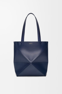 The Puzzle Fold Tote takes the iconic bag’s signature geometric lines and reimagines them in graphic and architectural panels that allow the bag to fold completely flat, making it the perfect travel companion. Soft, lightweight and inventively crafted, it is finished with discreet LOEWE branding. This medium version is crafted in shiny calfskin. - Shoulder or hand carry - Suede lining - Gold embossed LOEWE Details - Colour: Abyss Blue - Main material: Shiny Calf - Handle drop: 27 cm - Weight: 0.43 kg - Height (cm): 31.5 - Width (cm): 25.5 - Depth (cm): 14.5 - Height (inch): 12.4 - Width (inch): 10 - Depth (inch): 5.7 - Model ID: A657G50X01 - CIL: 0011091683 - Made in: Spain