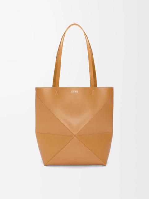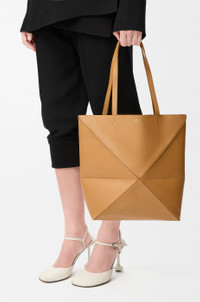The Puzzle Fold Tote takes the iconic bag’s signature geometric lines and reimagines them in graphic and architectural panels that allow the bag to fold completely flat, making it the perfect travel companion. Soft, lightweight and inventively crafted, it is finished with discreet LOEWE branding. This medium version is crafted in shiny calfskin. - Shoulder or hand carry - Suede lining - Gold embossed LOEWE Details - Colour: Warm Desert - Main material: Shiny Calf - Handle drop: 27 cm - Weight: 0.43 kg - Height (cm): 31.5 - Width (cm): 25.5 - Depth (cm): 14.5 - Height (inch): 12.4 - Width (inch): 10 - Depth (inch): 5.7 - Model ID: A657G50X01 - CIL: 0010896603 - Made in: Spain
