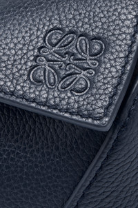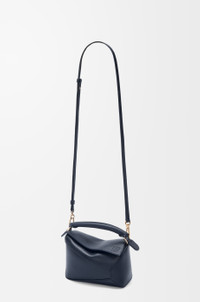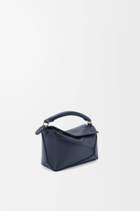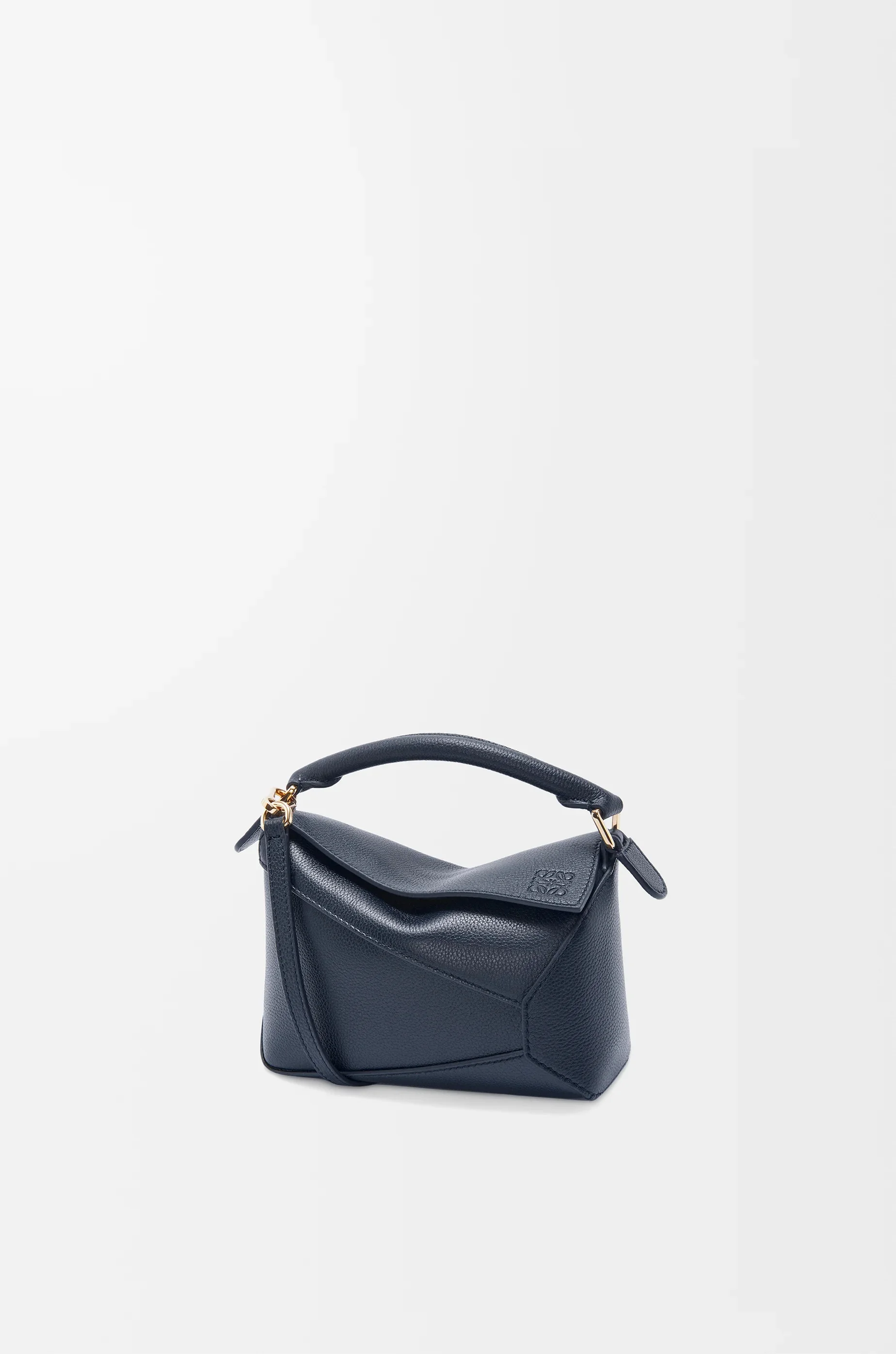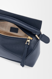 The Puzzle bag is the debut bag for LOEWE by Creative Director Jonathan Anderson. A cuboid shape and precise cutting technique create Puzzle’s distinctive geometric lines. This mini version is crafted in soft grained calfskin. - Shoulder, crossbody or hand carry - Detachable and adjustable strap, top handle - Zip closure with calfskin pull - Herringbone cotton canvas lining - Embossed Anagram Details - Colour : Deep Navy - Metallic colour : Gold - Main material : Soft Grained Calf - Strap length : 108.5 - 137 cm - Strap Drop : 54.5 - 68.5 cm - Handle drop : 4 cm - Weight : 0.27 kg - Height (cm) : 12.5 - Width (cm) : 18 - Depth (cm) : 8 - Height (inch) : 4.9 - Width (inch) : 7.1 - Depth (inch) : 3.1 - Model ID : A510P88X41 - CIL : - 0011207917 - Made in : Spain