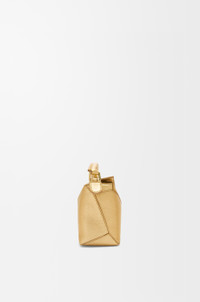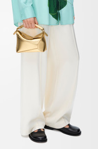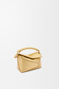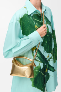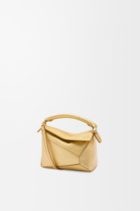 The Puzzle bag is the debut bag for LOEWE by Creative Director Jonathan Anderson. A cuboid shape and precise cutting technique create Puzzle’s distinctive geometric lines. This mini version is crafted in laminated lambskin. - Shoulder, crossbody or hand carry - Detachable and adjustable strap, top handle - Zip closure with calfskin pull - Suede lining - Embossed Anagram Details - Colour : Gold - Metallic colour : Gold - Main material : Laminated Lambskin - Strap length : 117.5 cm - Strap Drop : 59 cm - Handle drop : 4 cm - Weight : 0.24 kg - Height (cm) : 12.5 - Width (cm) : 18 - Depth (cm) : 8 - Height (inch) : 4.9 - Width (inch) : 7.1 - Depth (inch) : 3.1 - Model ID : A510P88X43 - CIL : - 0011243128 - Made in : Spain