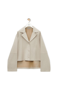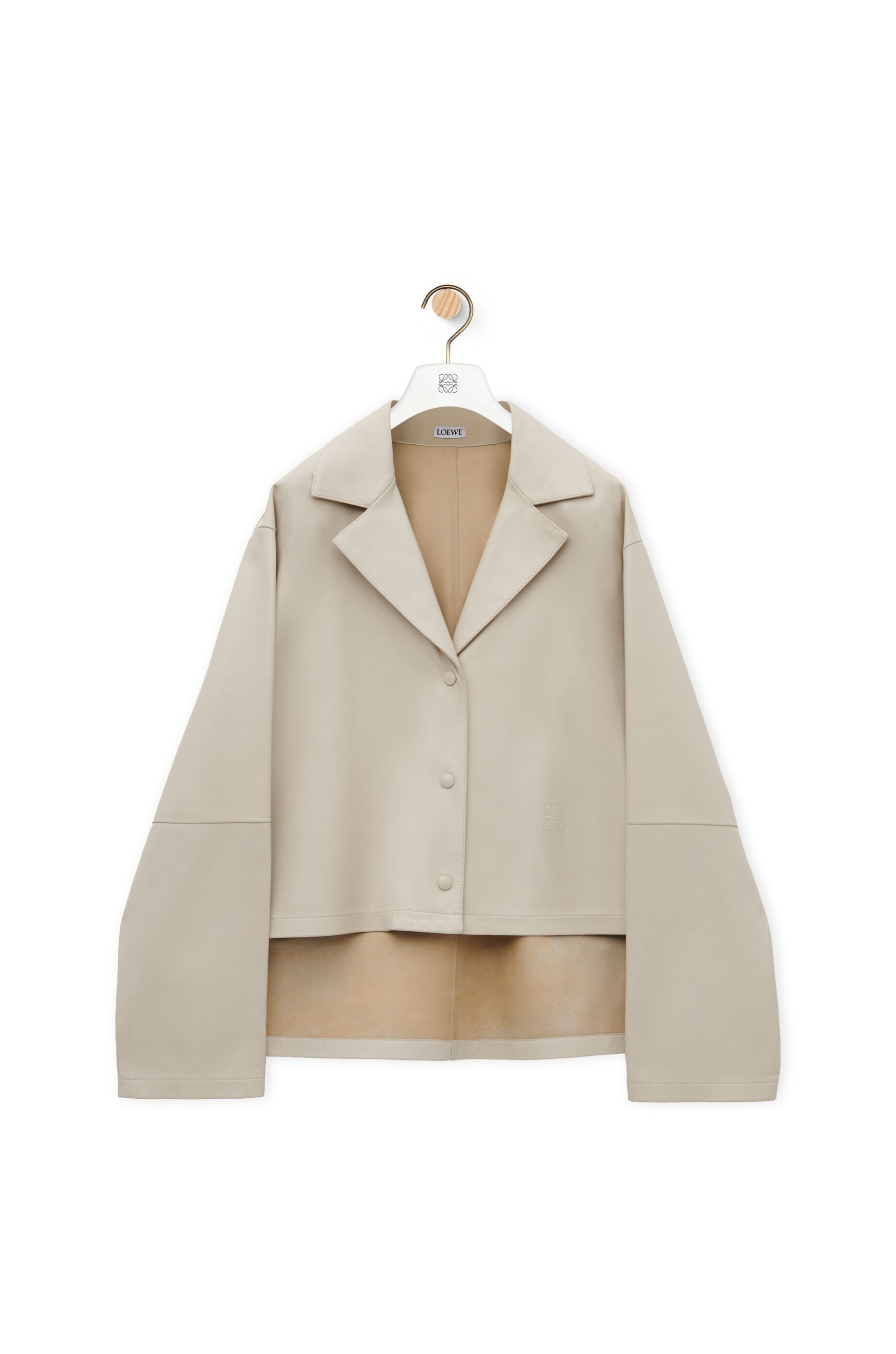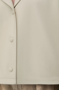 Blouse in lightweight satin nappa lambskin with an ultra-soft glove touch. - Relaxed fit, regular length - Notch lapels - Snap button front fastening - Straight asymmetric front to back hem - Embossed Anagram placed at the front Details - Colour : Light Beige - Main material : Nappa - Weight : 0.9 kg - Model ID : S359Y32L08 - Made in : Spain
