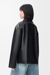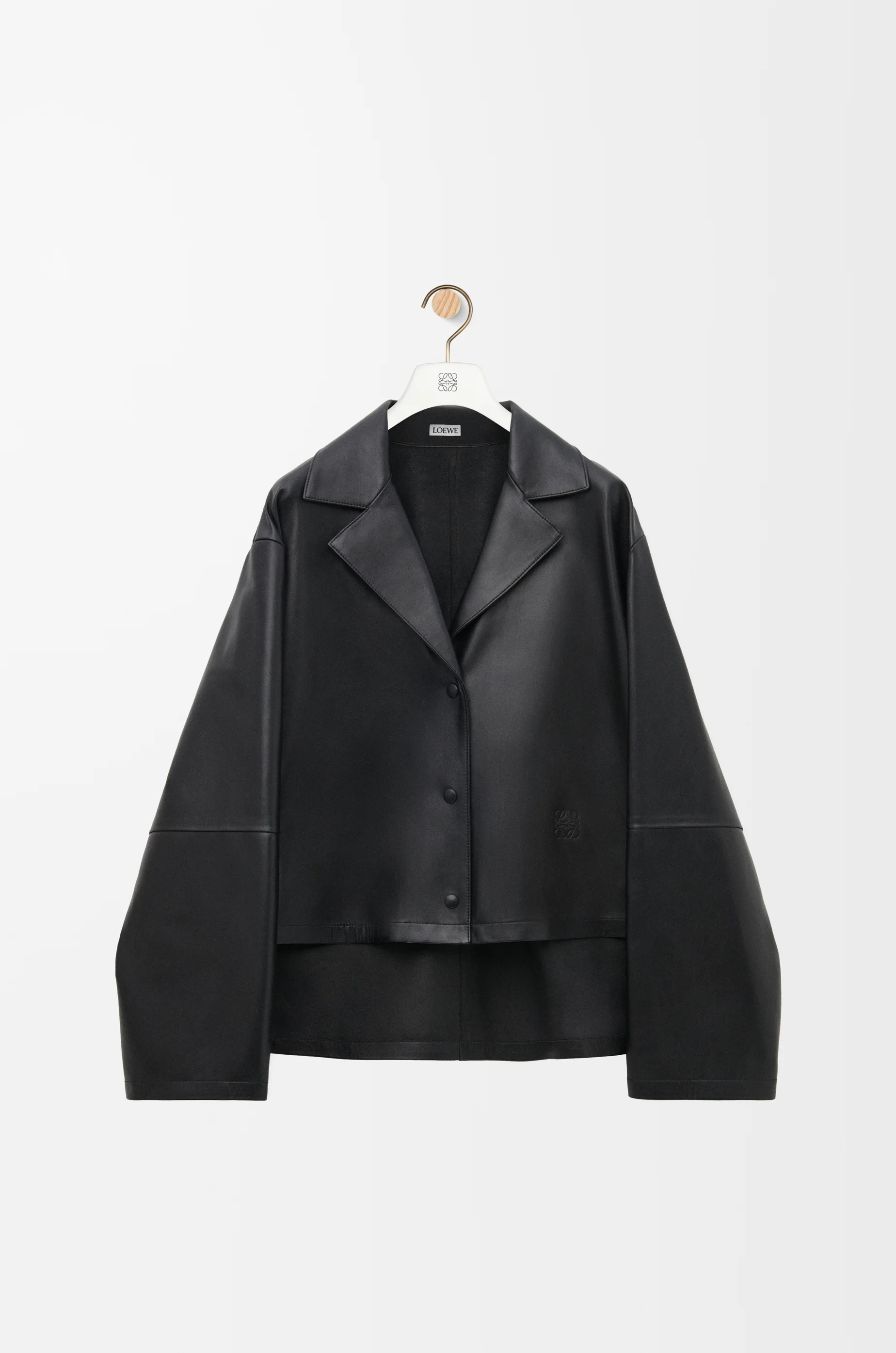 Blouse in lightweight satin nappa lambskin with an ultra-soft glove touch. - Relaxed fit, regular length - Notch lapels - Snap button front fastening - Straight asymmetric front to back hem - Embossed Anagram placed at the front Details - Colour : Black - Main material : Nappa - Weight : 0.9 kg - Model ID : S359Y32L08 - Made in : Spain